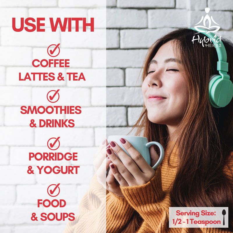 You won’t find any starch, grain, or preservatives here—just potent, fine-milled reishi that dissolves easily in warm water or blends seamlessly into your favourite drinks.