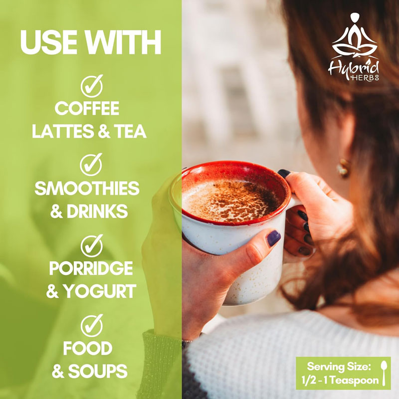 Mix ½ to 1 teaspoon into tea, hot water, or smoothies. No cooking or brewing required.